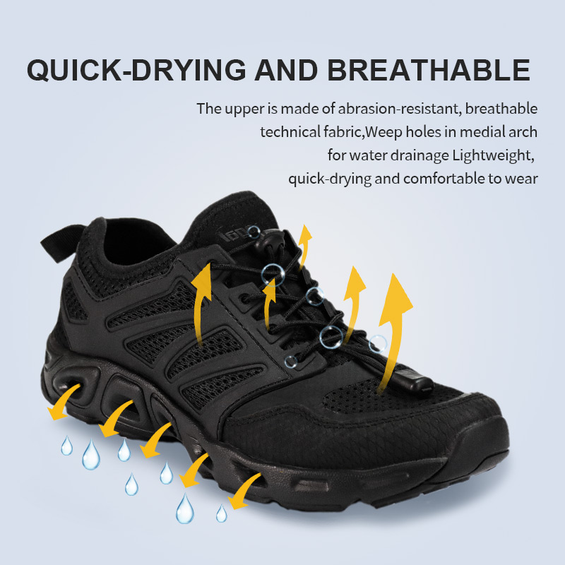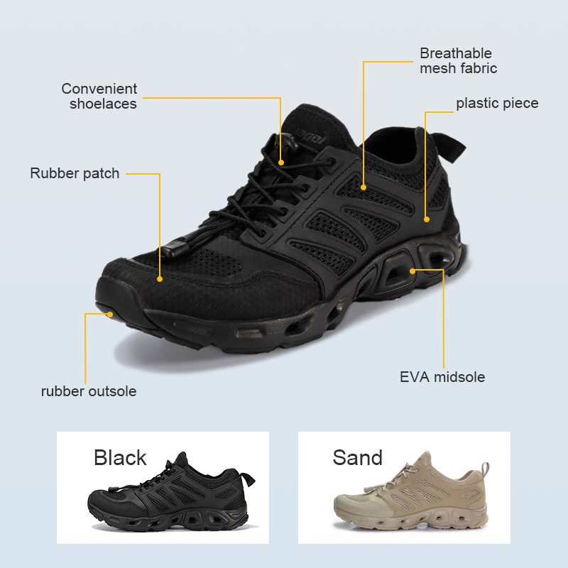 - తేలికైన మరియు శ్వాసక్రియ -పారుదల మరియు త్వరగా ఎండబెట్టడం -EVA షాక్ శోషక మిడ్సోల్ - అనుకూలమైన షూలేస్ డిజైన్