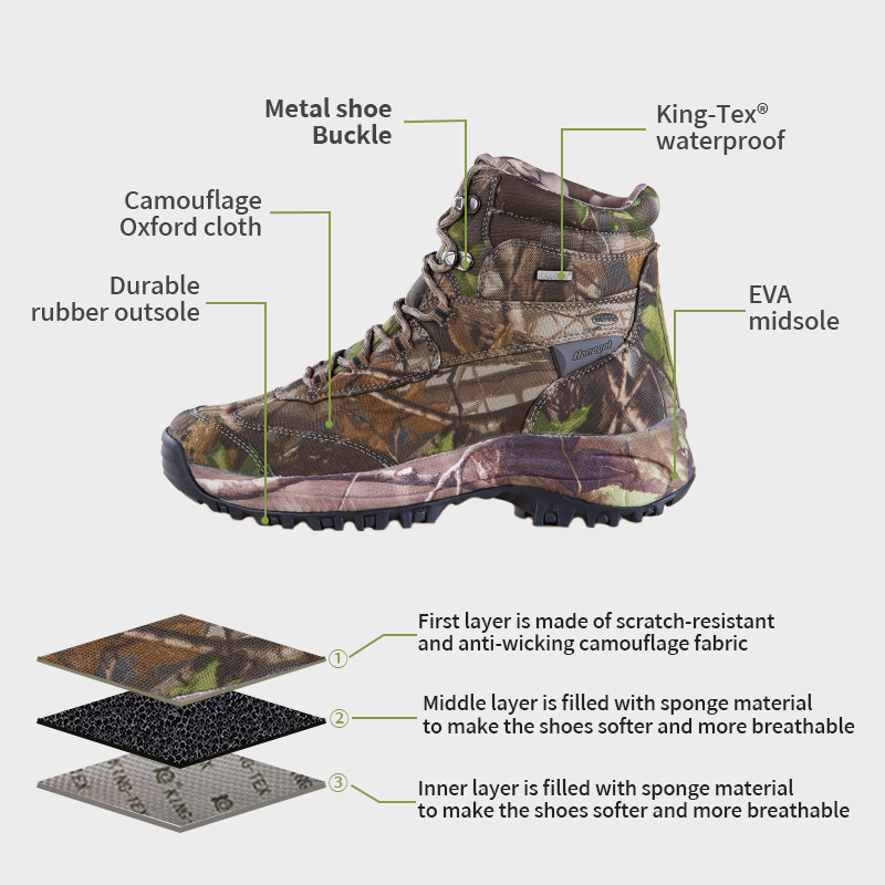కింగ్టెక్స్ వాటర్ప్రూఫ్ మెంబ్రేన్ హంటింగ్ బూట్స్ మార్ష్ మరియు బురద ద్వారా మీ పాదాలను ఎముకలను పొడిగా ఉంచుతాయి, అయితే స్టీల్త్-ఫ్రెండ్లీ డిజైన్ మీరు ప్రకృతి దృశ్యంలో కనిపించకుండా పోతుంది. కుంగిపోవడం లేదు. పరధ్యానం లేదు. మీరు మరియు వేట మాత్రమే. తదుపరి సమాచారం కోసం మాకు విచారణ పంపండి.
